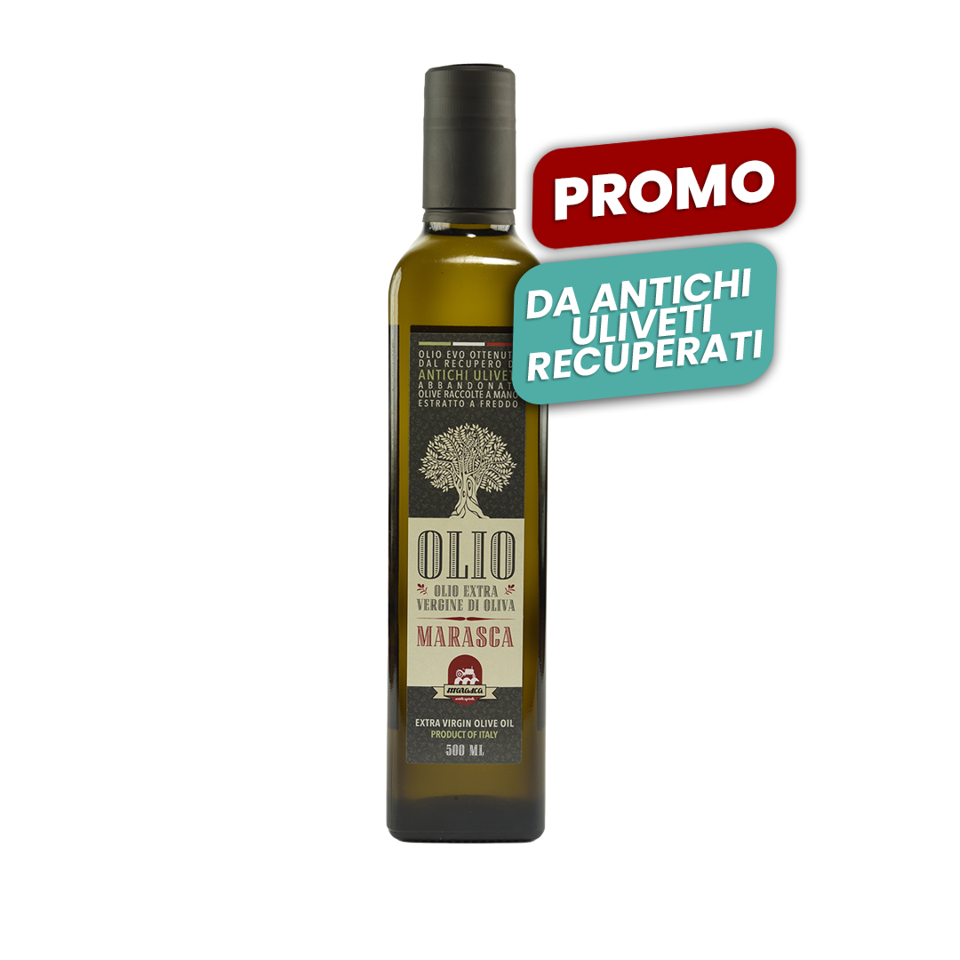 L’Olio Extra Vergine di Oliva Marasca annata olearia 2025 nasce dal nostro progetto di recupero di un antico uliveto abbandonato.
