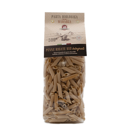 Prodotto ottenuto da impasto di acqua e semola di grano duro biologico, trafilato al bronzo ed essiccato. La semola impiegata è ottenuta dalla macinazione a pietra del grano, secondo il metodo tradizionale. Il grano duro biologico impiegato è un prodotto coltivato esclusivamente nell’Azienda Agricola Marasca.